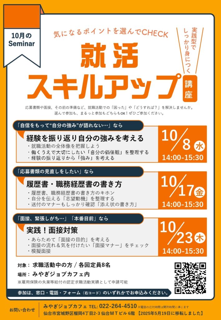 応募書類や面接、その前の準備など、就職活動での「困った」や「どうすれば?」を解決しませんか。 3つのテーマで就職活動について確認ができる「就活スキルアップ講座」は、気になるテーマだけ選んで参加しても、まるっと3テーマ参加してもどちらもOK!ぜひご参加・ご活用ください。