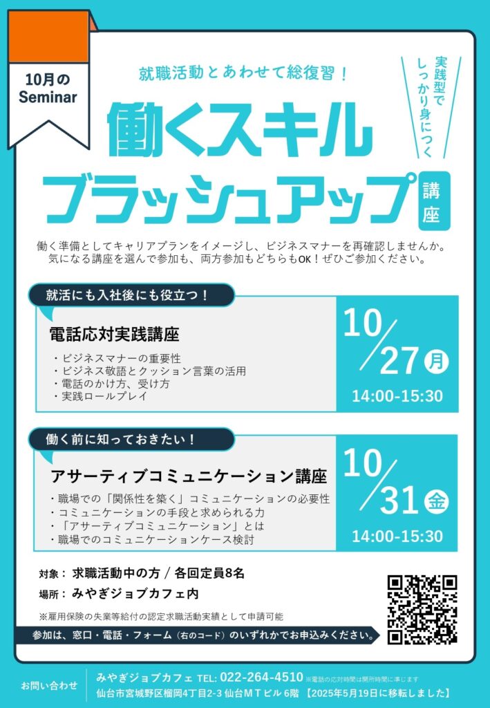 10/27(月)開催|「電話応対」実践講座|働くスキルブラッシュアップ講座①