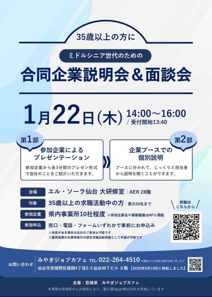 1/22開催|35歳以上の方に「ミドルシニア世代向け合同企業説明会&面接会」